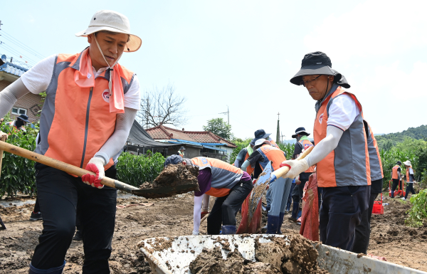 지난 25일 예정됐던 전사 혁신토론회를 연기하고, 김동철 사장과 최철호 전력노조위원장을 비롯한 경영진, 본사 처․실장, 지역본부장, 노조간부 등 임직원 150여명이 경기도 가평군 상면과 경남 산청군 등 피해 현장을 직접 찾아 구호 물품 기탁, 침수 주택 청소, 가재도구 정리, 급식 봉사 등 노사합동 복구활동을 펼쳤다.