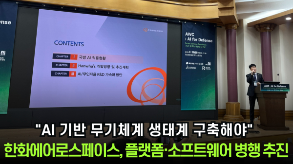 28일 국회의원회관에서 열린 ‘AWC 2025 in 국방’ 세미나 발표자로 나선 박매훈 한화에어로스페이스 유무인복합센터 센터장은 "단일 AI 소프트웨어뿐만 아니라 실제 AI를 적용할 수 있는 플랫폼 구축 사업도 추진해 AI 생태계를 조성해야 된다"며 "다목적무인차량 외 자율 무기체계의 R&D가 부족한 상황이며 많은 자율 무기체계 개발이 중단됐던 사례가 있다. AI를 적용할 무기체계 자체가 부족한 만큼 플랫폼부터 투자해 기반을 마련할 계획"이라고 말했다.