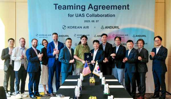 대한항공이 7일 미국 방산기업 안두릴(Anduril)과 한국 및 아시아·태평양 지역 무인 항공기 분야의 파트너십 구축을 위한 협력합의서(TA·Teaming Agreement)에 서명했다고 밝혔다.