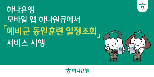 하나은행이 하나은행 대표 모바일 앱 ‘하나원큐’를 통해 '예비군 동원훈련 일정조회' 서비스를 제공한다고 8일 밝혔다.