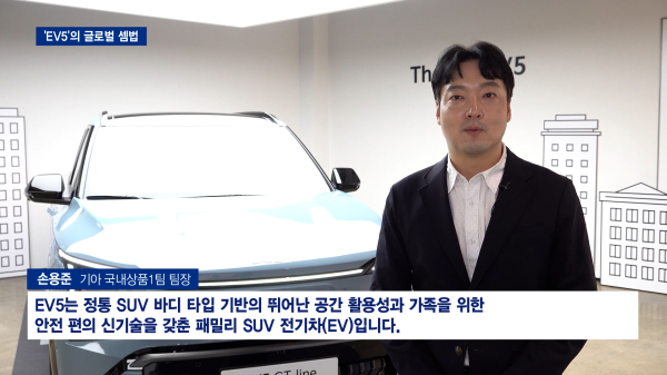"EV5는 정통 SUV 바디 타입 기반의 뛰어난 공간 활용성과 가족을 위한 안전 편의 신기술을 갖춘 패밀리 SUV 전기차(EV)입니다. 국내 EV 대중화를 가속화하고, 새로운 표준을 제시할 차종입니다."