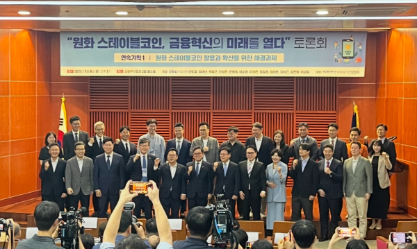 '원화 스테이블코인, 금융혁신의 미래를 열다'를 주제로 8일 열린 토론회에서 원화 스테이블코인 활용을 위해 제도 정비를 신속히 추진해야 한다는 의견이 나왔습니다.