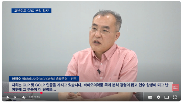 "저희는 GLP 및 GCLP 인증을 가지고 있습니다. 바이오의약품 쪽에 분석 경험이 많고 인수 합병이 되고 난 이후에 그 부분이 더 탄력을..."