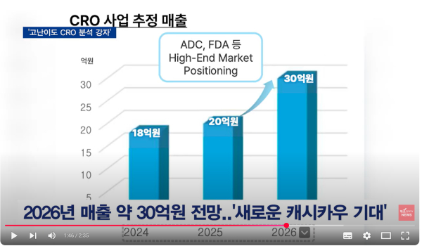압타머사이언스는 2024년 18억 원 규모였던 CRO 매출이 2025년 20억 원, 2026년에는 30억 원까지 늘어날 것으로 보고 있습니다. 압타머사이언스CRO가 새로운 수익원으로 자리잡을 것이란 기대입니다.