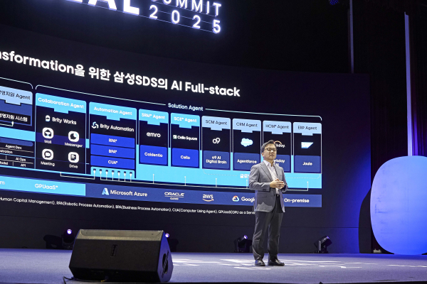 이준희 삼성SDS 대표가 기업들의 AI 혁신을 위한 모든 기술 요소를 통합 제공하는 'AI 풀스택' 전략을 공개했습니다.