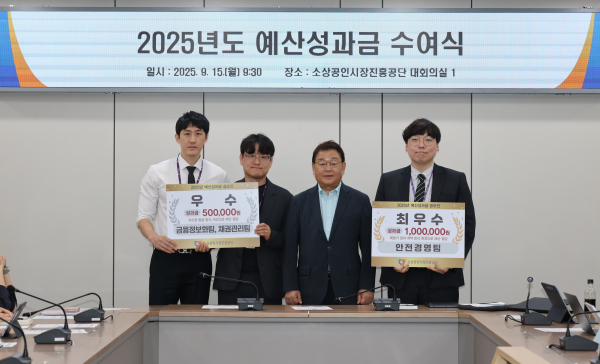 소상공인시장진흥공단이 15일 오전, 대전 공단 본부에서 예산성과금 수여식을 개최해서 총 150만 원의 예산성과금을 지급했다고 16일 밝혔다.