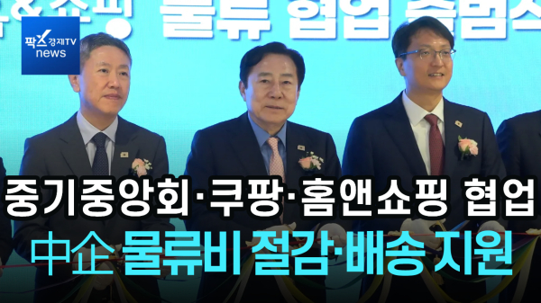 중소기업중앙회와 쿠팡, 홈앤쇼핑이 모여 16일 '중소기업 판로지원 확대 물류협업 출범식'을 개최했습니다.