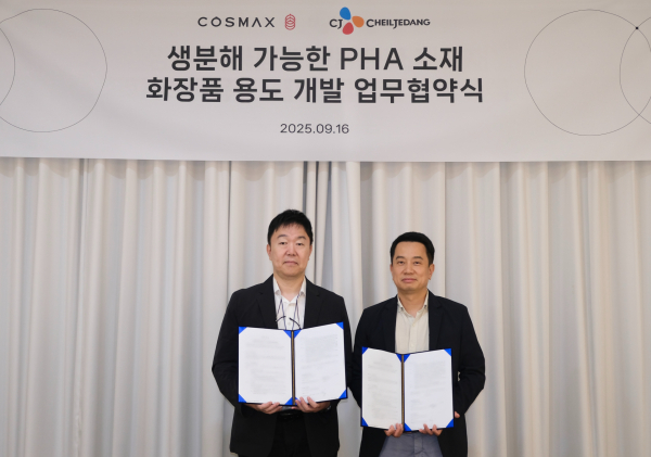 강승현 코스맥스 R&I유닛장은 “PHA 부문 리딩 기업인 CJ제일제당과 협력해 글로벌 스탠더드에 맞는 친환경 패키지 연구개발을 확대할 것”이라며 “지속가능한 솔루션으로 환경 부하를 줄이고 고객에게 새로운 가치를 제공하는 혁신 소재 개발을 이어 나가겠다”라고 말했다.