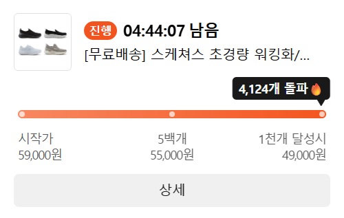 오전 9시에 시작가가 열린 후 구매자가 '공동구매 참여하기를 누르면, '오후 7시 기준 목표달성 개수에 따라서 최종 결정되거나 설정해 둔 최종 개수가 달성되면 미리 마감되기도 한다.