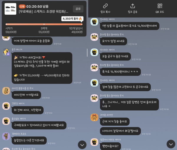 또한 오픈채팅방에 들어가면 운영자인 '공구마스터'가 상품 특장점과 활용법을 안내하고 참여자들이 실시간으로 의견과 후기를 나누며 자연스럽게 커뮤니티가 형성되고 있다.
