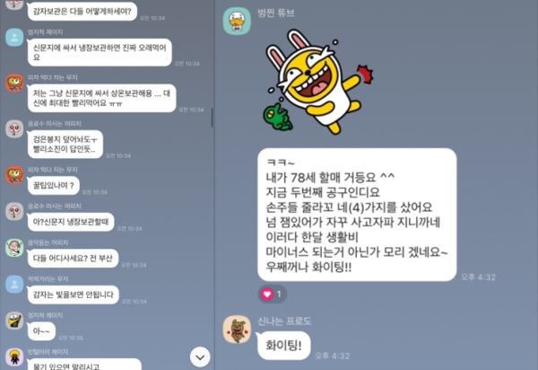 실제로 기자가 '오늘공구' 오픈 채팅방에 들어가 보니 참여자들은 타 플랫폼과 가격을 비교하거나 가격 차이를 직접 공유하는가 하면 찐 살림 꿀팁을 공유하는 모습이었다. 연령 성별 구분 없이 다 들어와서 재밌어하며 대화를 나누는 것이 인상적이었다.
