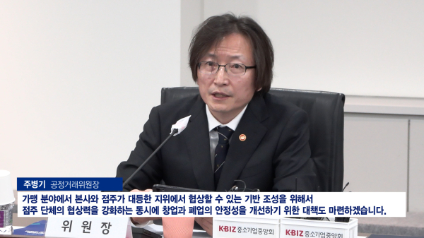 "가맹 분야에서 본사와 점주가 대등한 지위에서 협상할 수 있는 기반 조성을 위해서 점주 단체의 협상력을 강화하는 동시에 창업과 폐업의 안정성을 개선하기 위한 대책도 마련하겠습니다."