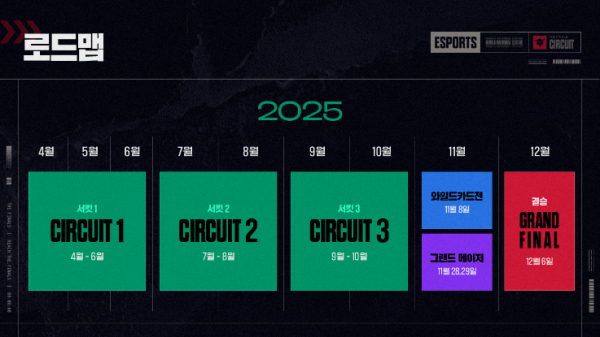 이번 서킷은 2025년 마지막 정규 시즌으로, 서킷 3까지의 누적 승점을 기준으로 상위 6개 팀이 오는 12월 개최되는 ‘그랜드 파이널’ 진출권을 획득하게 된다. 예선을 통해 선발된 ‘A.S’, ‘OTCS’, ‘FN ESPORTS’, ‘벌꿀오소리’ 등 8개 팀이 매주 주말 온라인 경기를 치르며, 결승전은 11월 1일 온·오프라인으로 개최된다. 경기는 3인 2팀이 맞붙는 ‘캐시아웃 최종 라운드 룰’ 방식의 7판 4선승제로 진행된다.