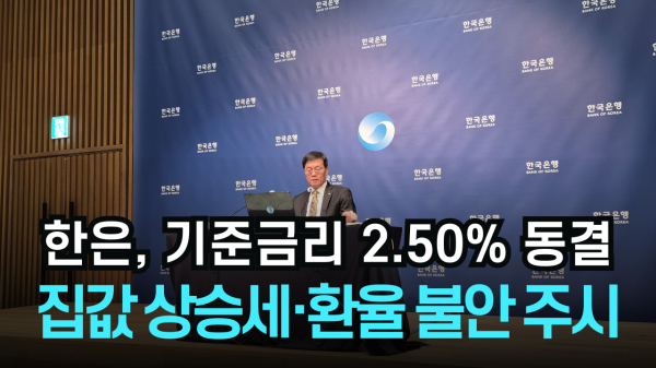 한국은행이 기준금리를 현 수준으로 유지하며, 부양보다 안정을 택했다. 23일 한국은행 금융통화위원회는 기준금리를 연 2.50%로 동결했다. 부동산시장 과열과 가계부채 증가 탓에 금융 안정성이 흔들릴 수 있어, 금리를 섣불리 조정하진 않은 것이다.