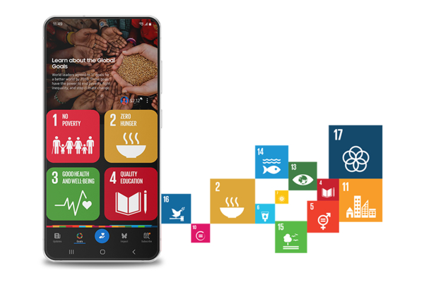 삼성 글로벌골즈 앱은 기술과 사회적 가치가 결합된 대표적인 사례로, '유엔의 날'을 맞아 더 많은 사람들이 지속가능개발목표 달성에 동참할 수 있는 계기를 만들어 주고 있다.