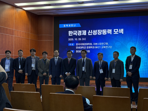 열린 '한국경제 신성장 동력 모색' 세미나에서 참석자들이 기념촬영을 하고 있다. [사진=이재인 기자]