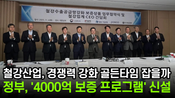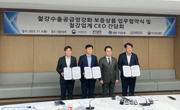 이어 “정부도 업계의 어려움을 무겁게 인식하고 있다”며 “이번 ‘철강 수출공급망 강화 보증상품’은 그 부담을 덜기 위해 마련된 중요한 지원책 중 하나”라고 강조했다. 문 차관은 “주요 철강사와 금융기관이 협력해 중소·중견업체의 수출 활동을 지원하는 상생의 결실로 이러한 노력이 산업 생태계 전반의 회복력 강화로 이어지길 기대한다”고 덧붙였다.