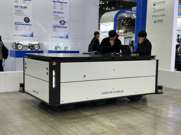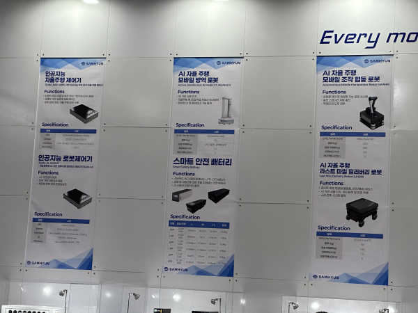 삼현 기술연구소 이일남 전무는 "보통의 자율주행은 그냥 라이더나 카메라를 기반으로 물건을 인식하는데, 우리는 그 기반의 정보를 갖고 객체로 전환해서 이 객체가 사람인지, 장애물인지, 도로인지 인식하는 자율주행 기반의 소프트웨어를 가지고 있다" 면서 "보통 물류에서 사용하는 로봇은 실내지향형이 많은데, 우리는 타이어 자체가 솔리드 타이어를 적용해 실외 바깥 도로를 다닐 수 있게 설계했다"고 전했습니다.