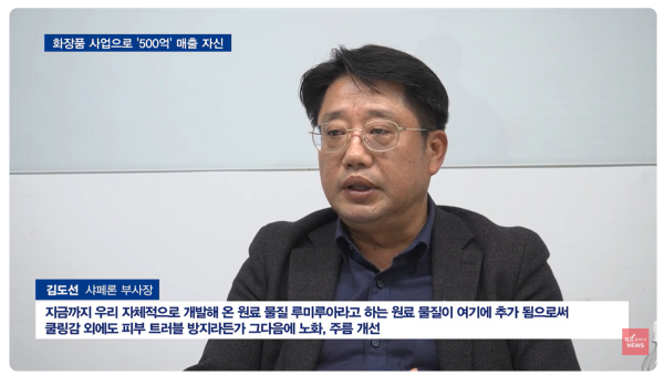 "지금까지 우리 자체적으로 개발해 온 원료 물질 루미루아라고 하는 원료 물질이 여기에 추가 됨으로써 쿨링감 외에도 피부 트러블 방지라든가 그다음에 노화, 주름 개선 이런 측면으로도 또 임상학적으로 입증이 된 제품이기 때문에..."